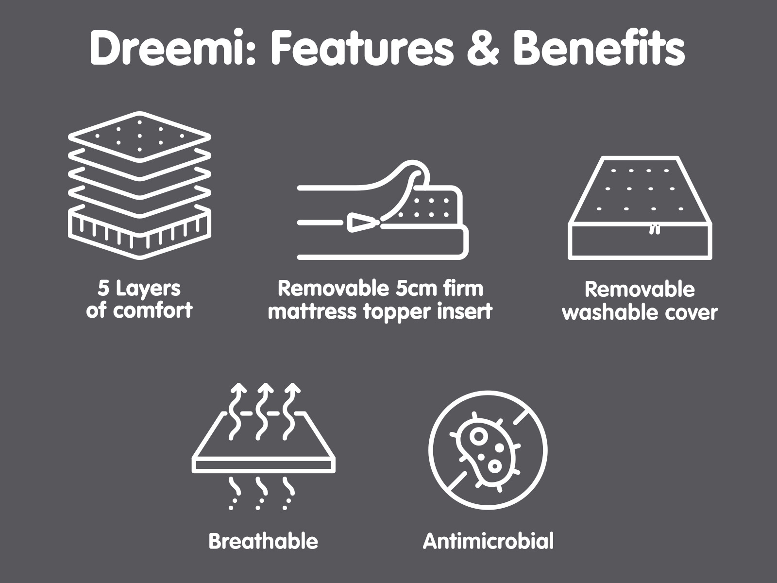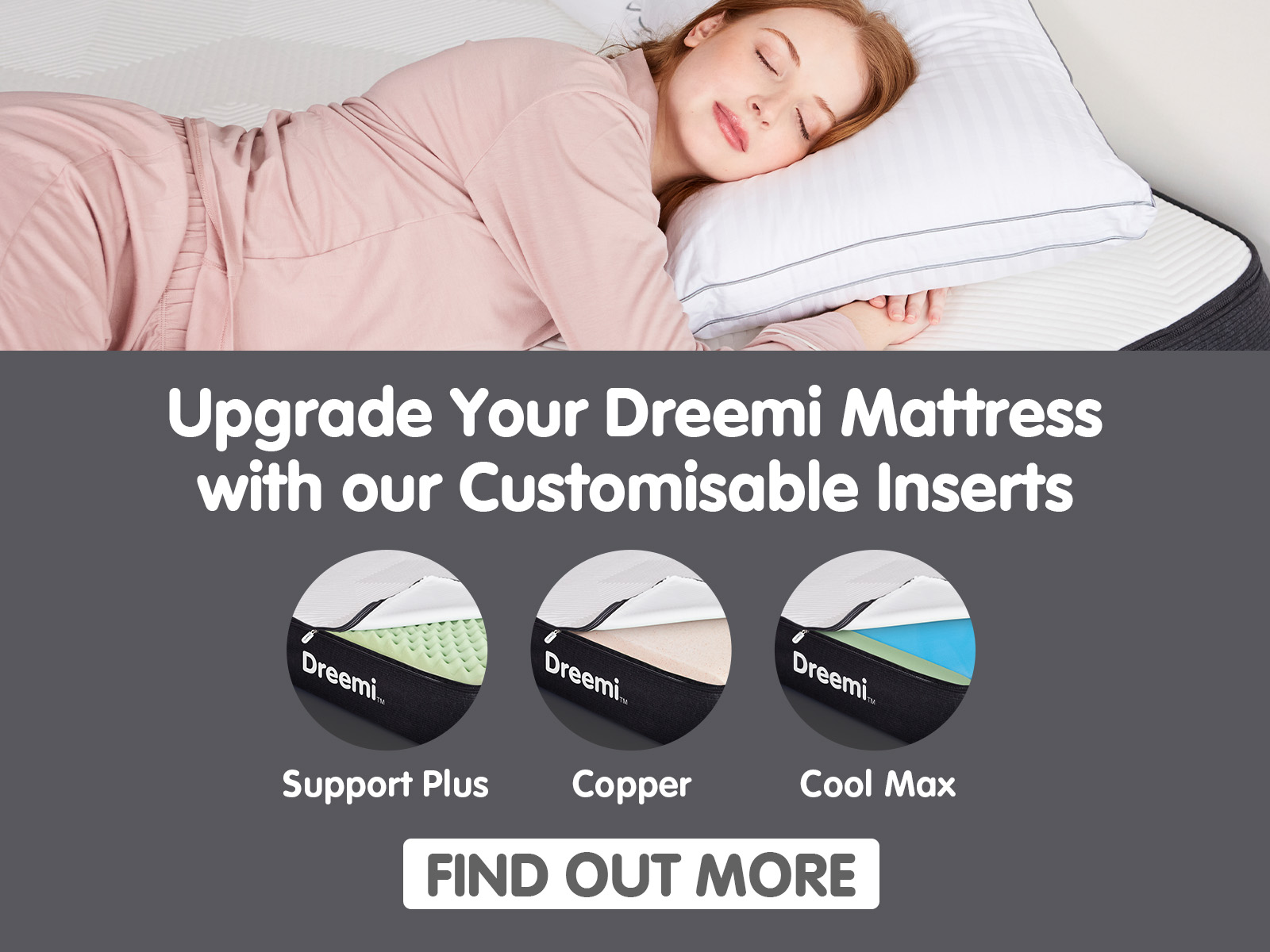 Designed to grow with you and your evolving sleep needs, the Dreemi mattress is your gateway to personalised comfort. Crafted for ultimate flexibility, Dreemi makes it easy to adjust your mattress with a simple zip opening, giving you access to specially tailored inserts that transform the feel of your bed. Choose from three unique inserts to customise your sleep experience and achieve the perfect level of comfort and support.