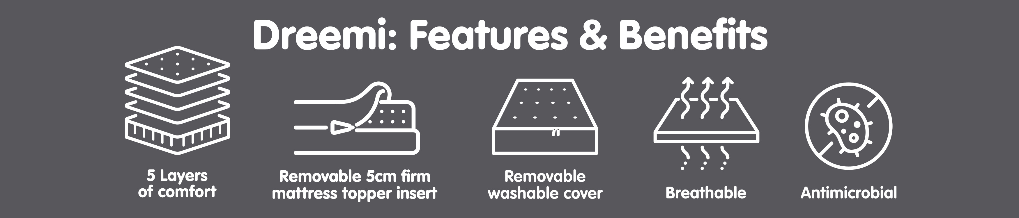 Breathable Design: Encased in a soft, moisture-wicking Tencel cover that’s removable and washable, Dreemi ensures a cool, refreshing sleep environment.