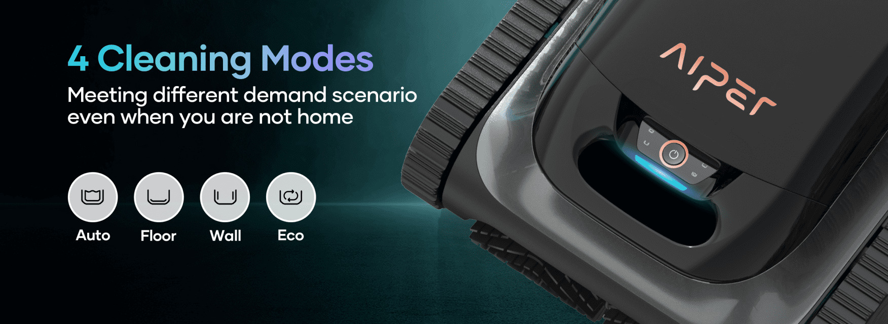 Cleaning Modes: The Aiper Scuba S1 features four versatile cleaning modes, allowing you to select the perfect setting for your pool's needs each time you clean. This tailored approach eliminates wasted time, enhances efficiency, and guarantees that you achieve the level of cleanliness you desire.